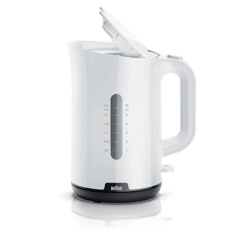 The Braun Breakfast 1 Kettle is a quick and easy way to boil water for a cup of coffee or tea in the morning. Boil 200 mL of water immediately in just 45 seconds with the fast boiling system. A wide front opening makes it easy to fill from the tap and auto-off is initiated when the temperature is reached for convenience.