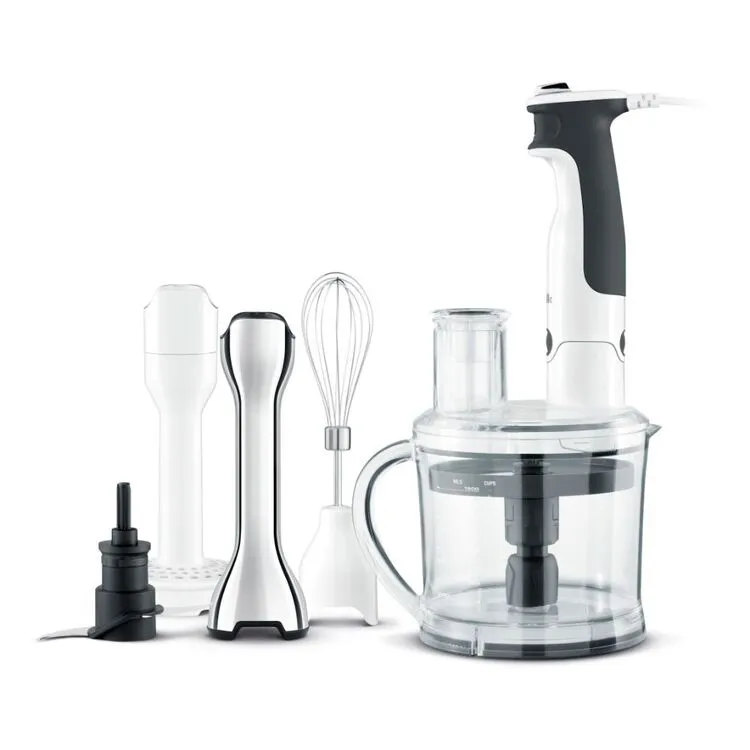 Breville All In 1 Stick Blender will become your favourite ingredient-prepping tool. This blender allows you to blend, mash, chop and slice all in one. The All in One Anti Suction Blending allows you to keep control of the mix with up to 80 per cent less suction than other stick mixers. The Adjustable Slicing Disc has 18 thickness settings so you can customise the thickness of your slices from 0.5mm thin up to 6.0mm thick. Select the texture of your mashed potato with the Variable Mashing Leg, simply twist the adjustable head for fine, medium or coarse mashing texture. Cut through tasks in half the time using the micro-serrated dual blades that chop without over-processing.