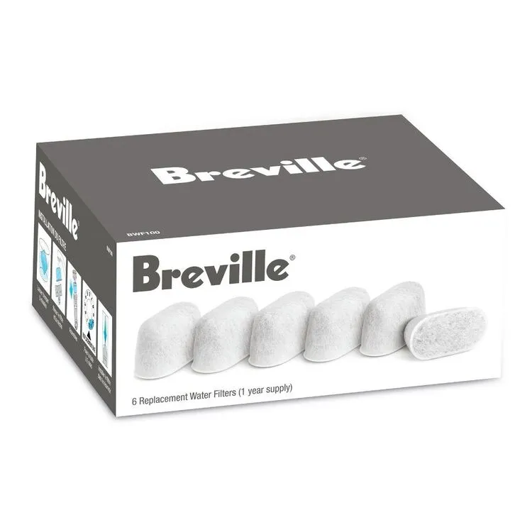Keep your coffee machine operating smoothly with the Breville Water Filters 6 Pack BWF100. Coffee machine maintenance is important to prolong the life of your machine and keep your morning brew tasting it’s best, which is why proper water filtration is a must. These water filters are compatible with the Breville Oracle, the Oracle Touch, the Barista Pro, the Barista Express, the Infuser, the Duo-Temp, the Dual Boiler, and the Dynamic Duo.