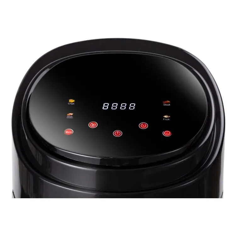Make your meals healthier with the Healthy Choice 6.5 Litre Digital Black Air Fryer. With a digital control LED display, you can monitor the temperature and time for up to 60 minutes for up to 6.5 liters of food. Featuring a non-stick coating and adjustable temperature control up to 210°C, the air fryer lets you achieve the same tasty, crispy results while using less energy and healthier oil-free cooking. This powerful air fryer boasts 1900 Watts of power and a removable basket for easy cleanup, giving you guilt-free snacks without any mess.