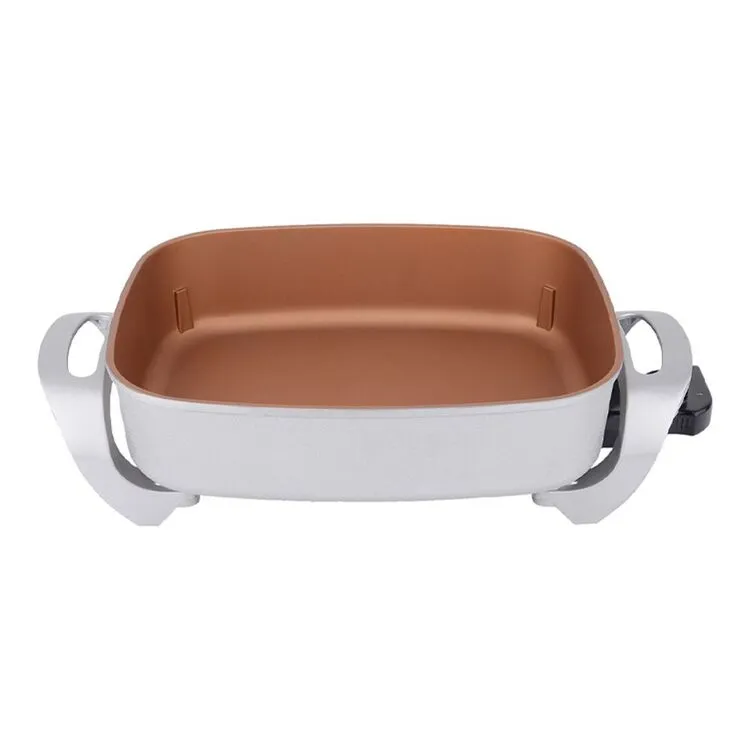 Sear meats, simmer curries, sauté veggies, scramble eggs, bake a casserole, fry chicken, all in one pan, with the Healthy Choice Copper Electric Fry Pan. The options are endless with this banquet-size 9.1 litre capacity Copper Electric Fry Pan, with a spacious 38 x 30 centimetre working surface, PTFE-free and PFOA-free 100% non-stick polished copper coating, and 5 temperature level adjustments. Designed to cook using the natural oils in the food without needing any more extra added oil, this benchtop electric frying pan offers a natural cooking method that is as good for you as it tastes.