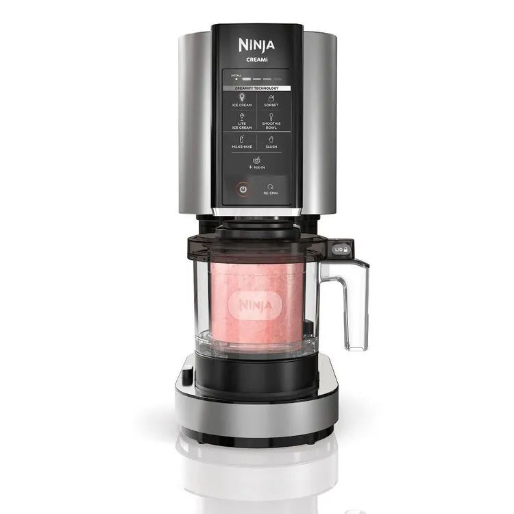 Create your favourite ice cream, sorbets, milkshakes and other frozen desserts at home with the Ninja CREAMi Ice Cream Maker. Transform frozen solid bases in three easy steps: simply prep your base, freeze overnight and process at the touch of a button. Ninja Creami Ice Cream Maker has 7 One-Touch programs that allow for the perfect combination of speed, pressure, and time to completely shave through your frozen tub.