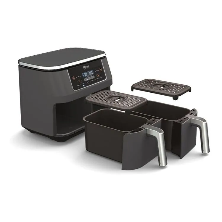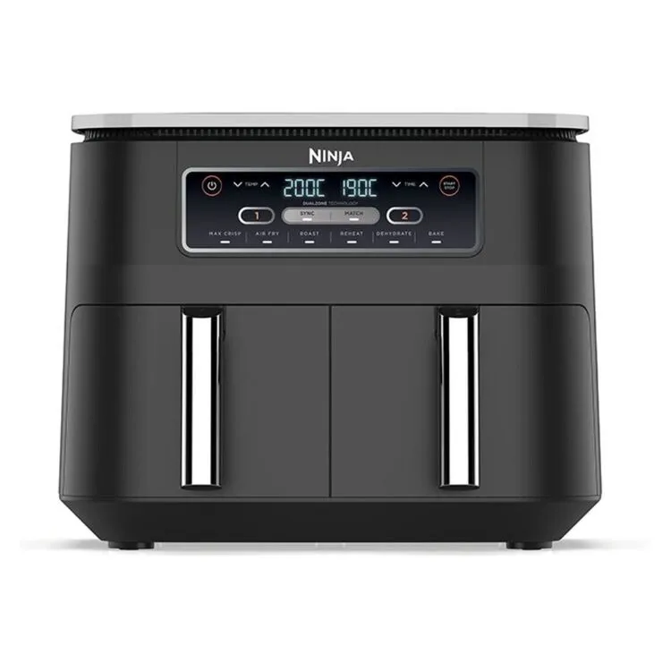 Designed with 2 independent baskets to let you cook 2 foods at once, the Ninja Dual Zone Air Fryer AF300 provides twice as much functionality as a traditional air fryer. DualZone™ Technology features Smart Finish feature for cooking 2 foods 2 ways that finish at the same time, and a Match Cook button to easily copy settings across zones for full 7.6 litre capacity. With 6 customizable cooking programs and a wide temperature range, serve up a wide range of deliciously crisp meals and snacks for your friends and family!