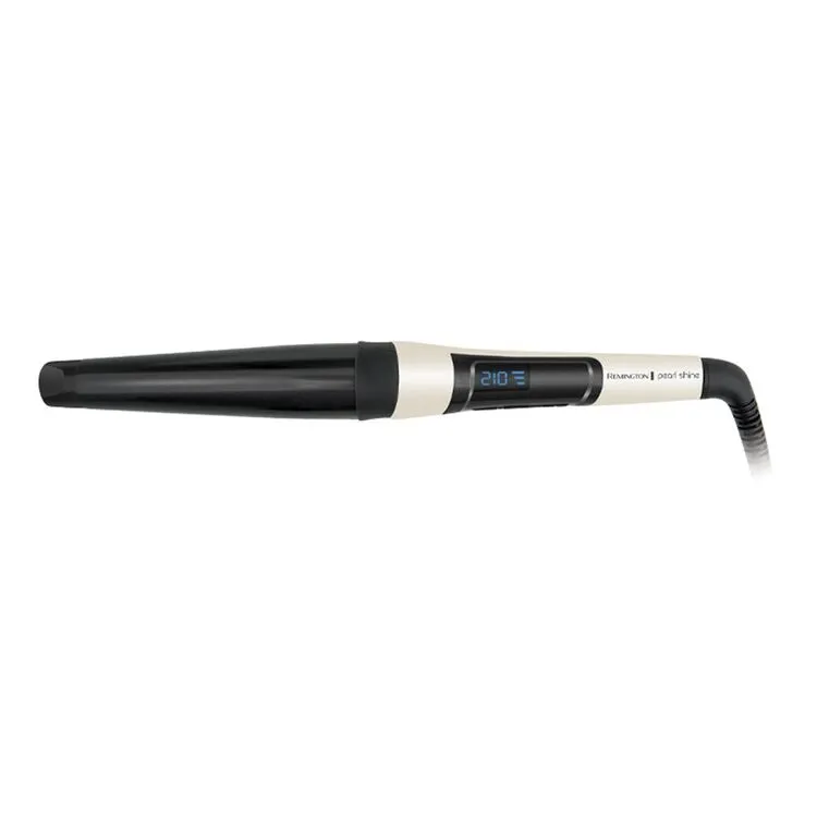 Leave your hair healthy, shiny and silky smooth with the Remington Pearl Shine Conical Wand, featuring an advanced ceramic coated barrel infused with real pearl for effortless bouncy curls or loose waves. With five customisable digital heat settings between 130°C and 210°C and a 25mm – 38mm adjustable barrel, this wand is perfect for any hair type. A rapid 30 second heat up and turbo boost function will let you reach your optimal temperature faster, while an automatic shut-off provides safety and peace of mind.