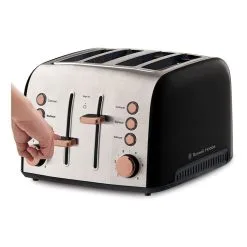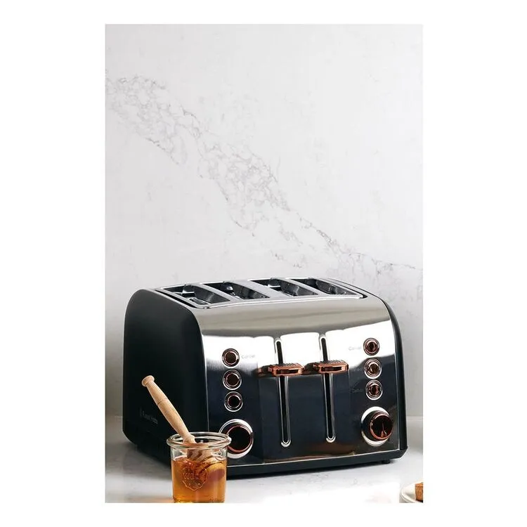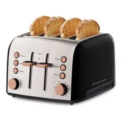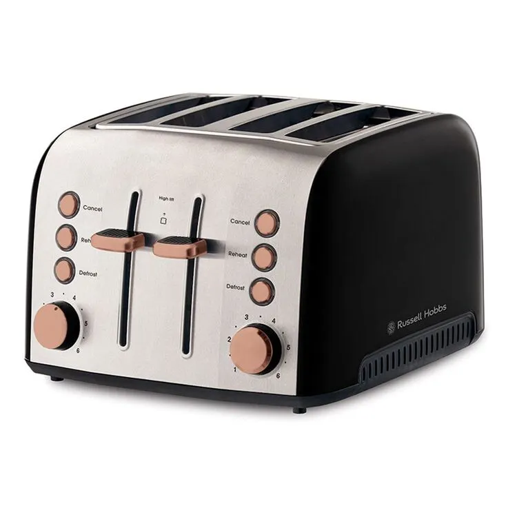 Somewhat industrial yet stirkingly modern, the Russell Hobbs Brooklyn 4 Slice Toaster blends style and sophistication with understated functionality. Featuring a brushed stainless steel front, matte black housing and striking copper accents, this Brooklyn Toaster will add style to any kitchen design. With multiple functions, settings and browning controls, adjust to get your perfect morning toast!