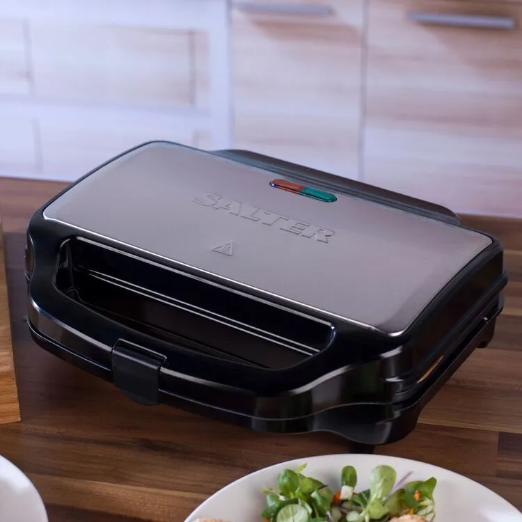 Toast up a grilled cheese sandwich in the morning with the Salter Deep Fill Sandwich Toaster! This toaster comes with power and ready light indicators, automatic temperature control and non-stick coating to ensure easy cleaning. It is made out of stainless steel to ensure longevity and rust resistance.