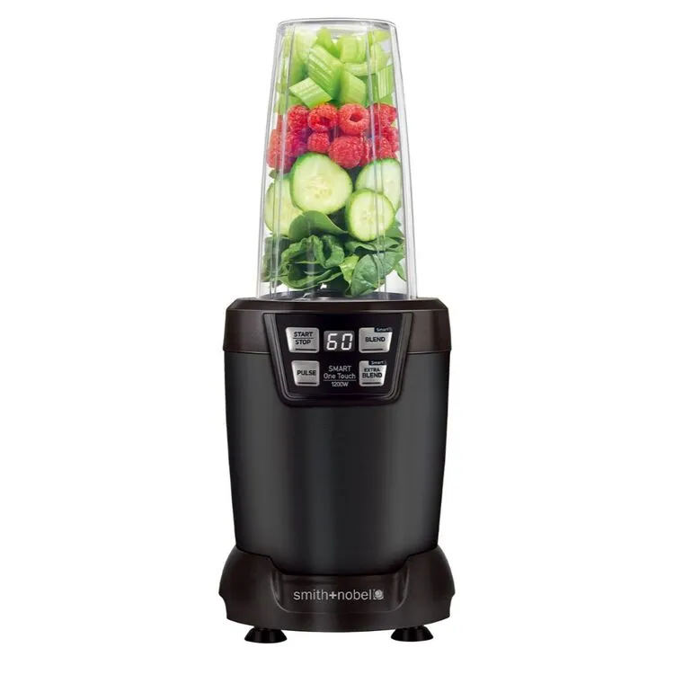 Get creative with your recipes using the Smith & Nobel Personal Smart Blender, designed to blitz through fruit, veggies, ice, and more at the touch of a button! Featuring 4 buttons for easy 1 step blending, plus a range of modes and settings, this Personal Smart Blender can be adjusted to suit your needs. A quality stainless steel 6 prong blade will make short work of most ingredients, and 2 included cups with storage and drink lids will let you refrigerate your blends for later or drink them on the go.