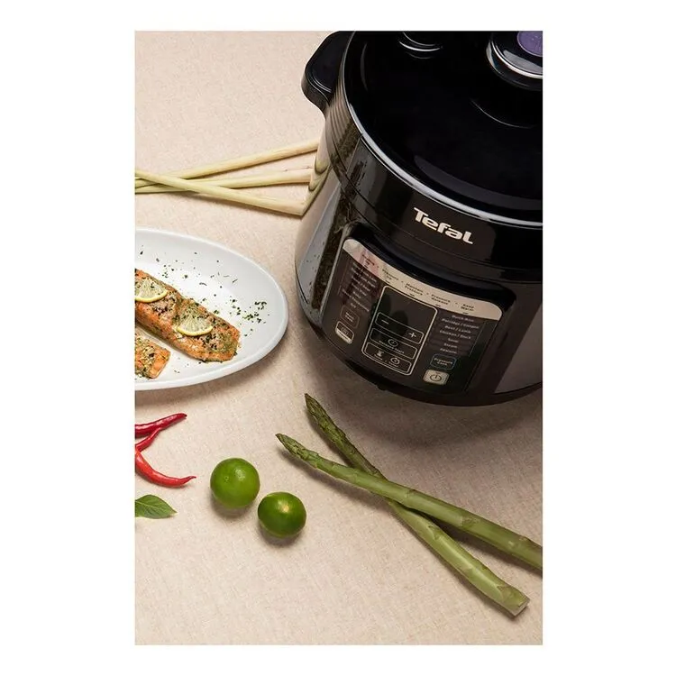Spend less time in the kitchen and more time with the ones you love with the Tefal Home Chef Smart Multicooker. Home Chef Smart Multicooker is the fast, versatile pressure cooker that will have you preparing delicious meals for the entire family in a fraction of the time. Featuring 15 pre-set programs, it does it all, from rice and congee to meats, soups and special recipes like sous-vide cooking and abalone. Two additional special functions allow you to adjust the cooking time and temperature, for still more creative possibilities. It even has a sauce thickening program for your soups and sauces! Offering optimum security thanks to the one-touch safety pressure release button, this convenient multicooker is equipped with automatic keep-warm and pre-set timer functions, up to 24 hours for both. Rounding it all off are a family-friendly capacity and an easy-to-clean design of removable parts and accessories, including a measuring cup, rice spatula, soup spoon and steam trivet.