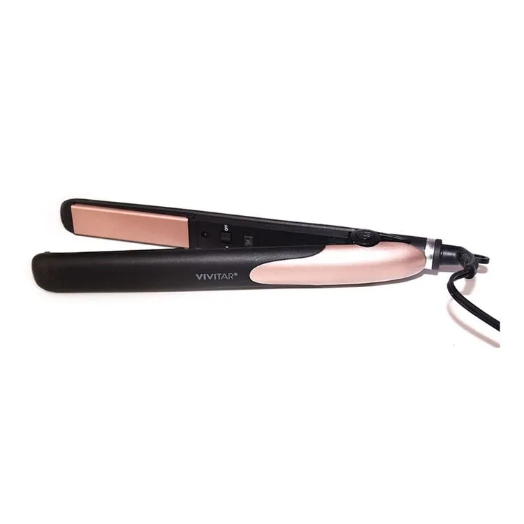 The Vivitar Ceramic Tourmaline Flat Iron can great long lasting straight hair on all types of hair, This flat iron features a 1 inch cermaic tormaline floating plates, a quick 30 second heat up and a 6ft, 360-degree swivel cord to ensure ease of use. It also has an easy on/off switch witha power indicator.